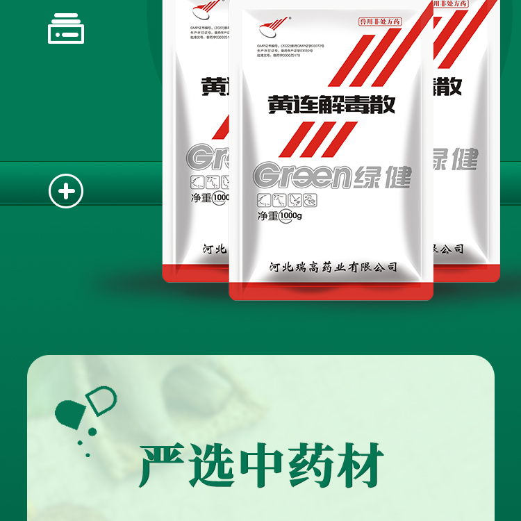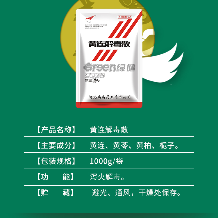 【綠健獸藥】黃連解毒散整箱1kg*15袋 豬牛羊雞鴨清熱瀉火解毒 血熱體溫高 口舌生瘡 高熱混感