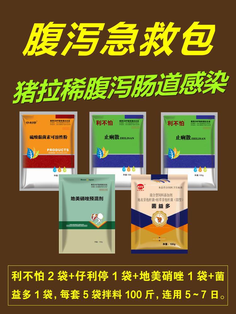 【仲牧聯和】腹瀉包(利不怕2袋+仔利停1袋+地美硝唑1袋+菌益多1袋)拉稀藥止痢腹瀉套餐