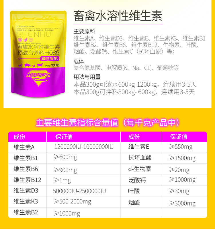【申慧直通車(chē)】果能300g 多維 電解多維 畜禽水溶性維生素促生長(zhǎng) 改善眼屎淚斑便秘皮毛臟
