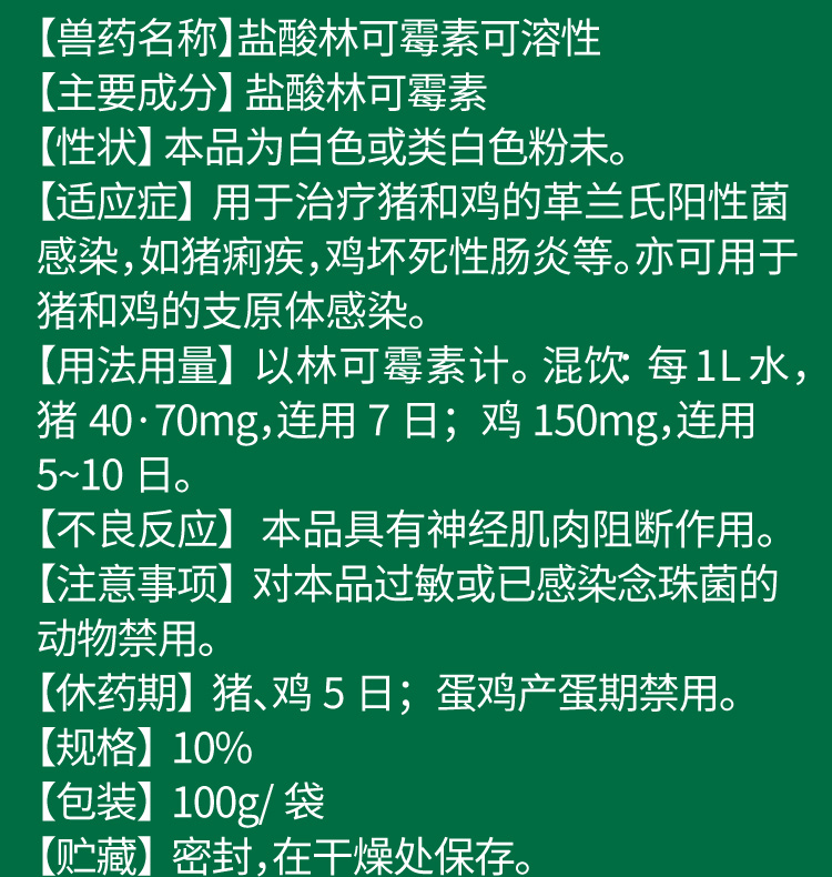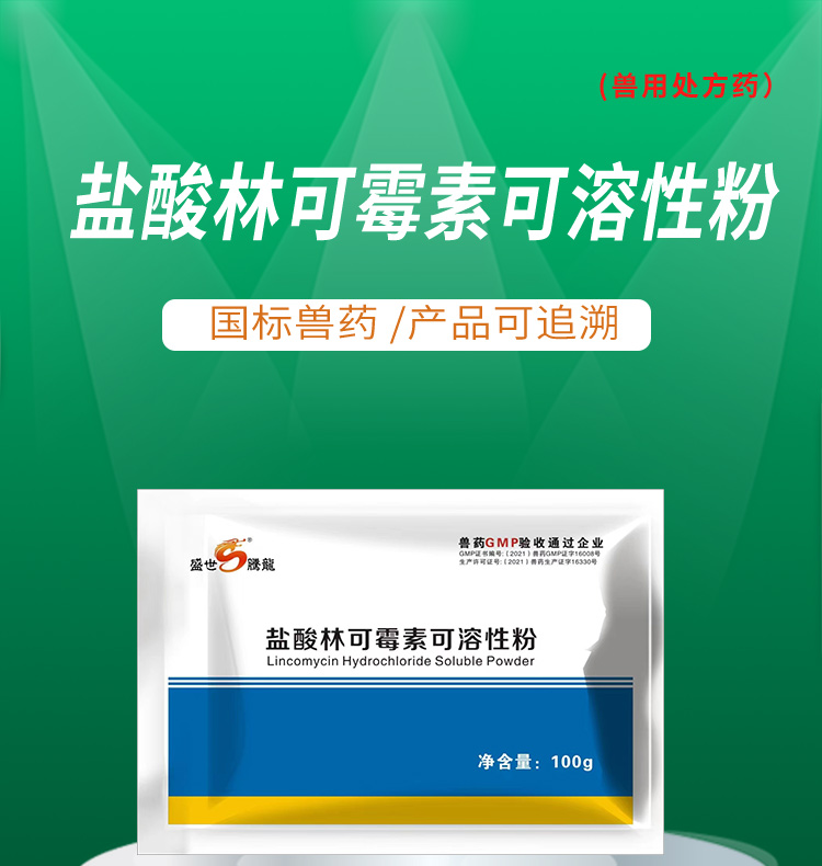 處方藥 【盛世騰龍】10%鹽酸林可霉素可溶性粉100g鏈球菌支原體肺炎喘氣病豬痢疾便血母豬產后消炎產后感染