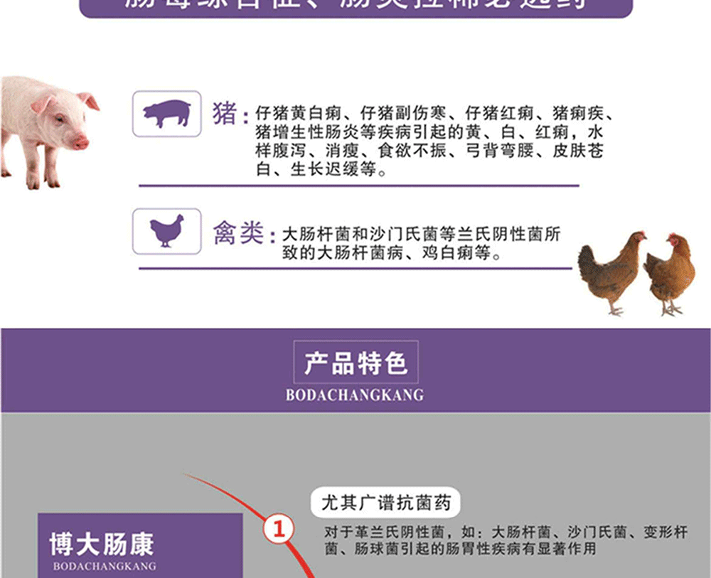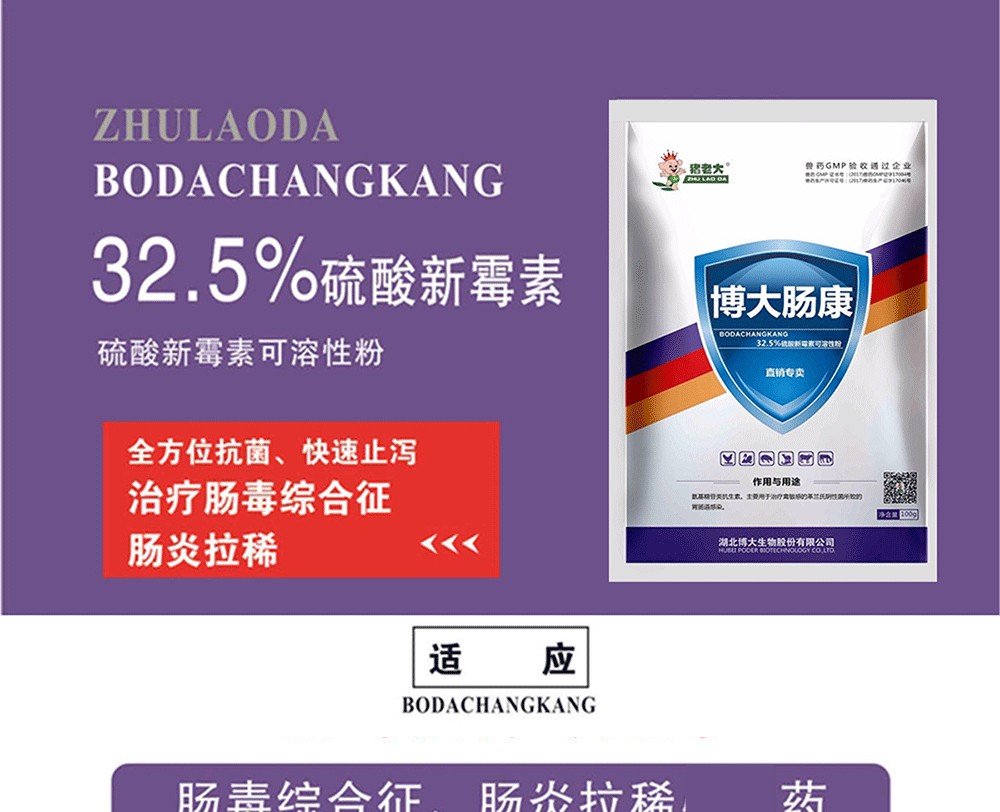 處方藥 【豬老大】博大腸康 32.5%硫酸新霉素可溶性粉 可飲水 細(xì)菌性腹瀉 腸毒綜合癥 腸炎