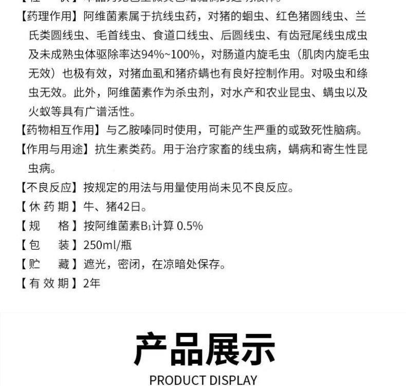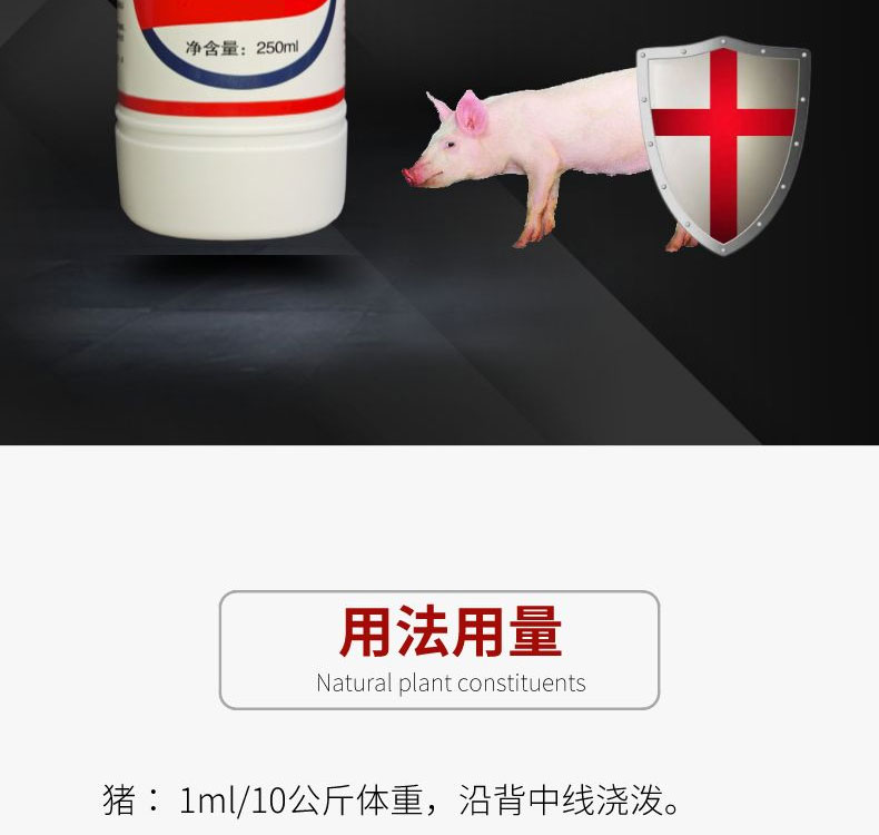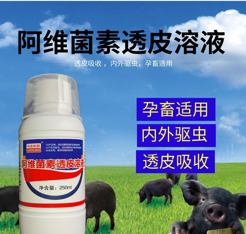 【華農利邦】阿維菌素透皮溶液250ml 母豬體內外驅蟲 外用驅蟲蹭癢皮炎蜱蟲螨蟲線蟲寄生蟲驅蟲藥