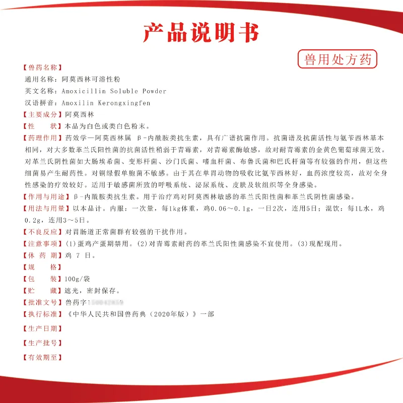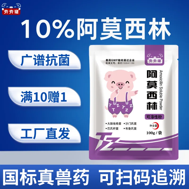處方藥 【夯夯豬】10%阿莫西林可溶性粉100g 廣譜殺菌 母豬全身感染 產(chǎn)后消炎 產(chǎn)后消炎 正品國標
