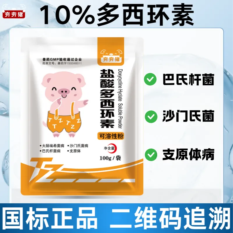 處方藥 【夯夯豬】10%鹽酸多西環素可溶性粉 獸用強力霉素 呼吸道疾病 肺炎咳喘 腸炎黃白痢疾
