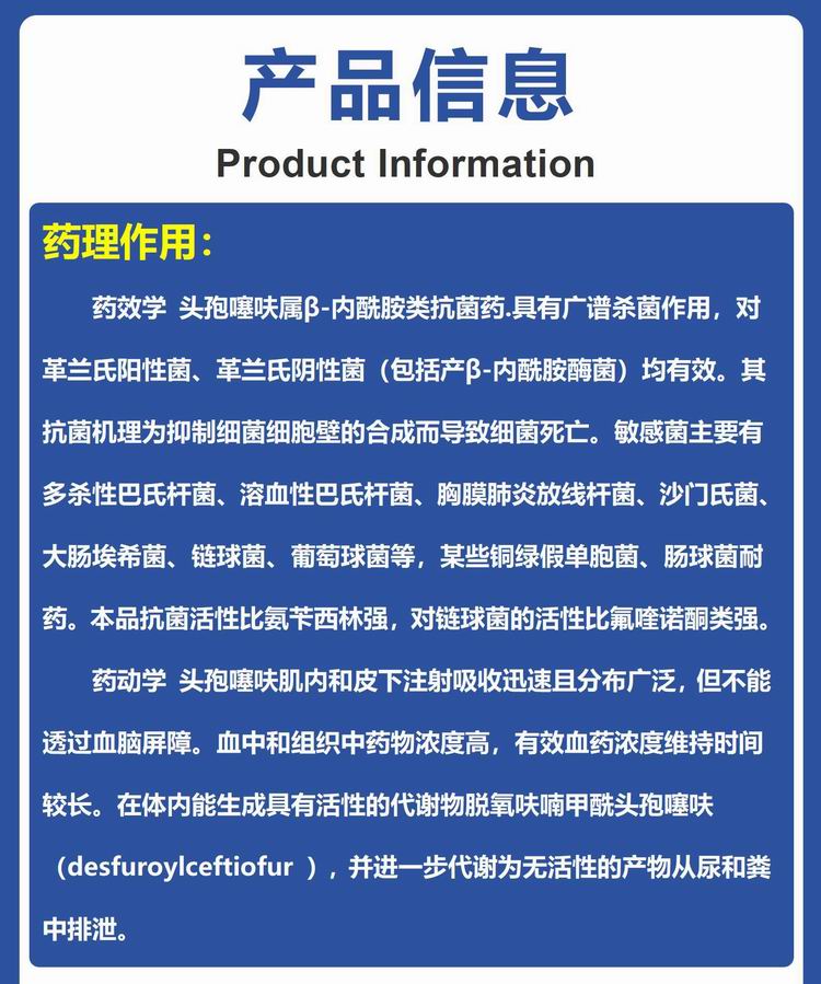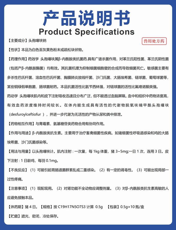 處方藥 【華農利邦】注射用頭孢噻呋鈉 0.5gX10支/盒 細菌性呼吸道感染腸炎腹瀉
