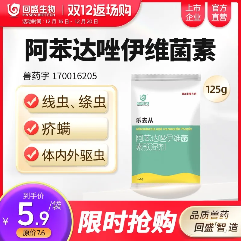 【回盛生物】#樂去從125g阿苯達唑伊維菌素預混劑 體外體內驅蟲豬驅蟲藥螨蟲驅蟲粉去蟲藥打蟲藥驅蟲劑