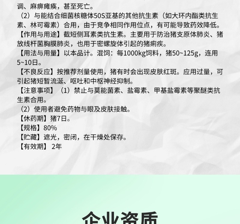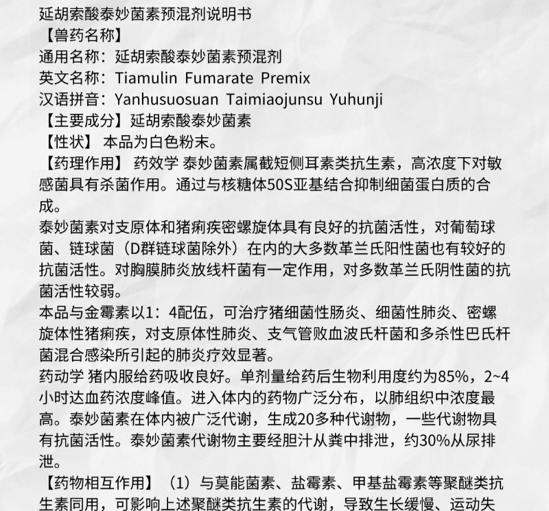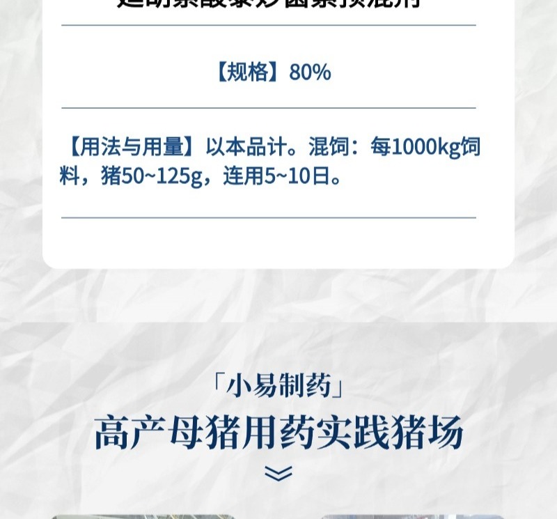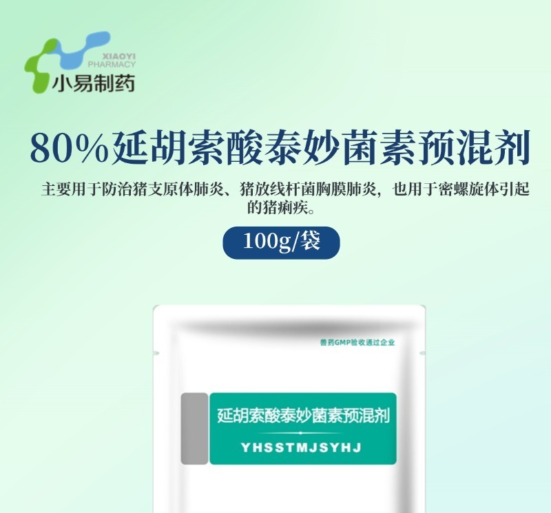 【小易制藥】80%延胡索酸泰妙菌素預(yù)混劑支原體肺炎喘氣病呼吸道胸膜肺炎回腸炎豬痢疾