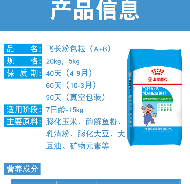 【中美普克】仔豬教槽料 飛長A+B 益生菌配方粉+粒 教槽料乳仔小豬教槽料仔小豬開口飼料小乳仔豬斷奶