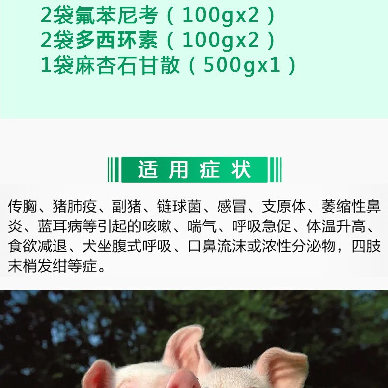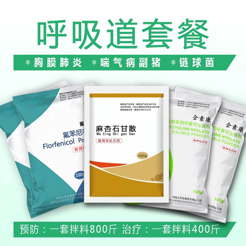 【百奧安圣】呼吸道套餐10%多西環素+20%包被氟苯尼考+麻杏石甘散咳嗽喘氣肺炎呼吸道套餐