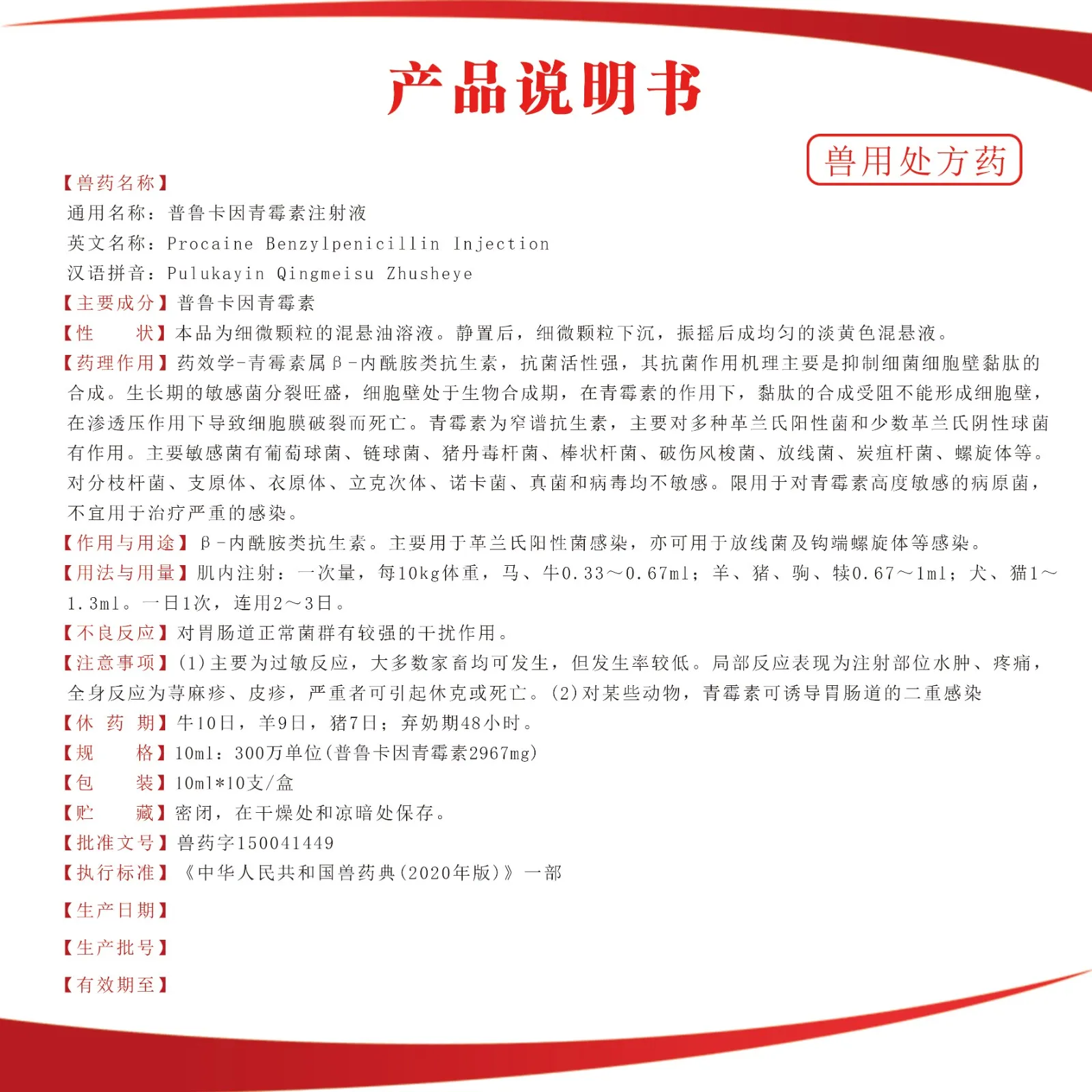 處方藥 【夯夯豬】普魯卡因青霉素注射液 抗菌消炎 消腫鎮痛 油溶混懸液工藝 300萬單位國標獸藥