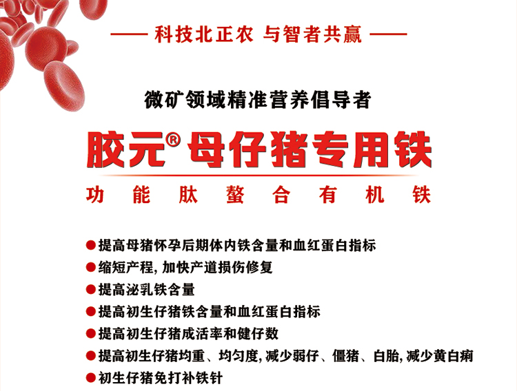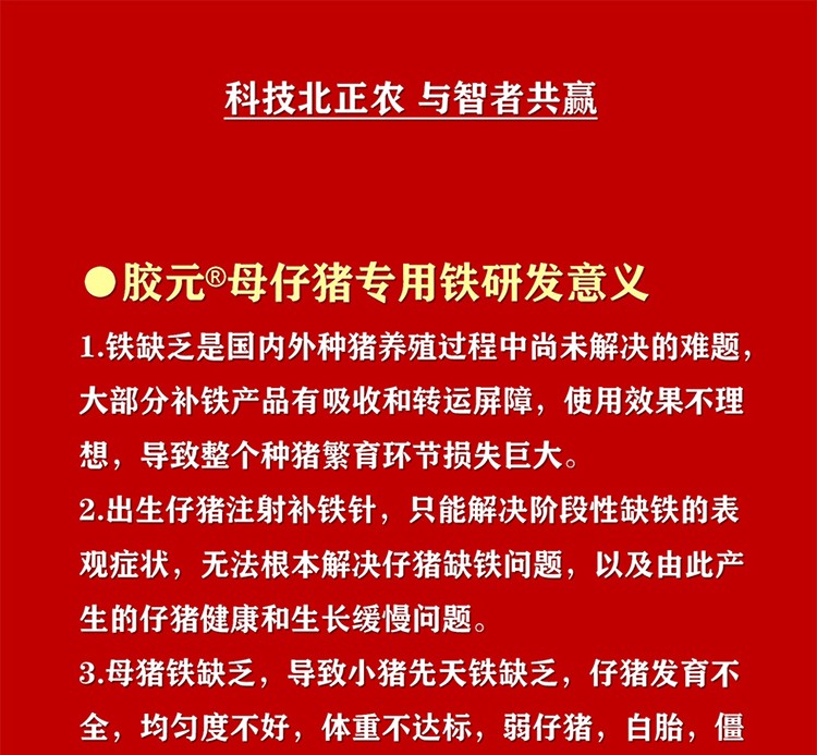 膠元 母仔豬專用鐵 母豬仔豬專用補鐵 規模化健康養殖 仔豬死淘少 母豬恢復快 母仔豬聯用 一體化增效