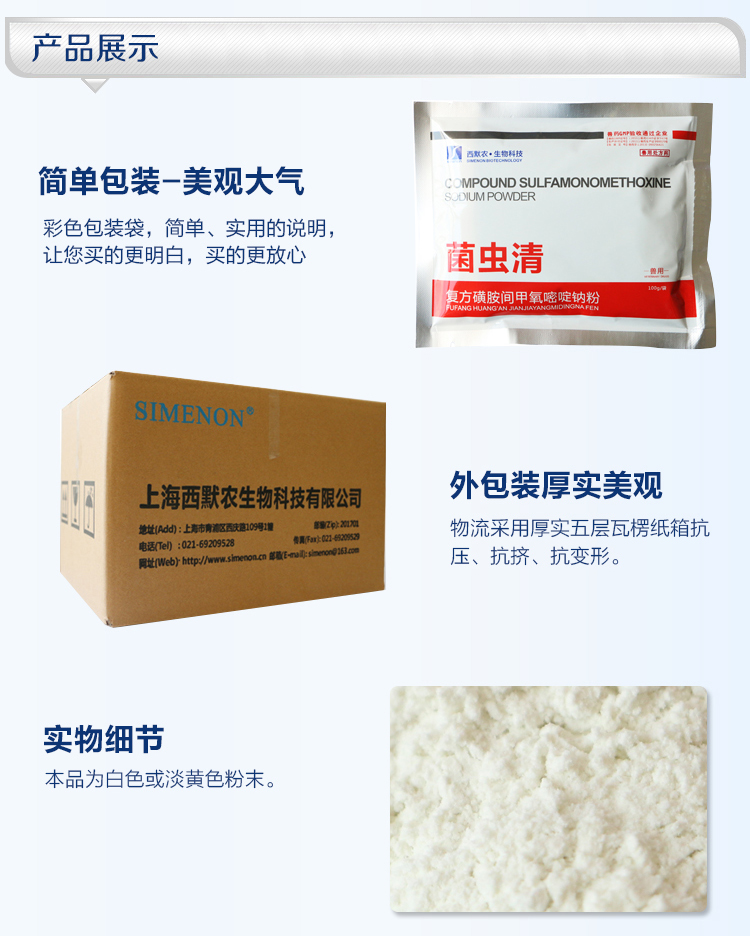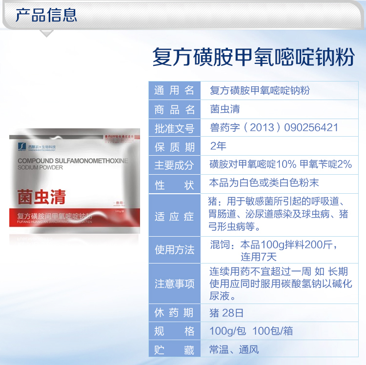 處方藥 【西默農】菌蟲清 復方磺胺甲氧嘧啶鈉粉100g*100袋/箱 弓形體附紅體鏈球菌球蟲萎縮性鼻炎
