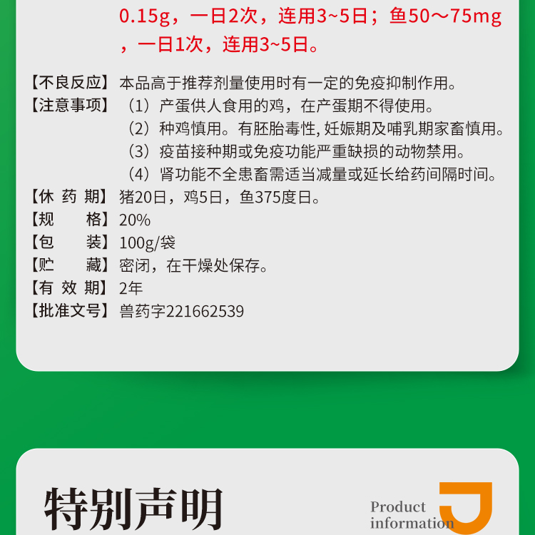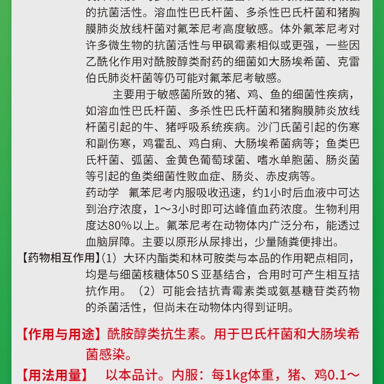 好評,用于拌料的氟苯尼考。
