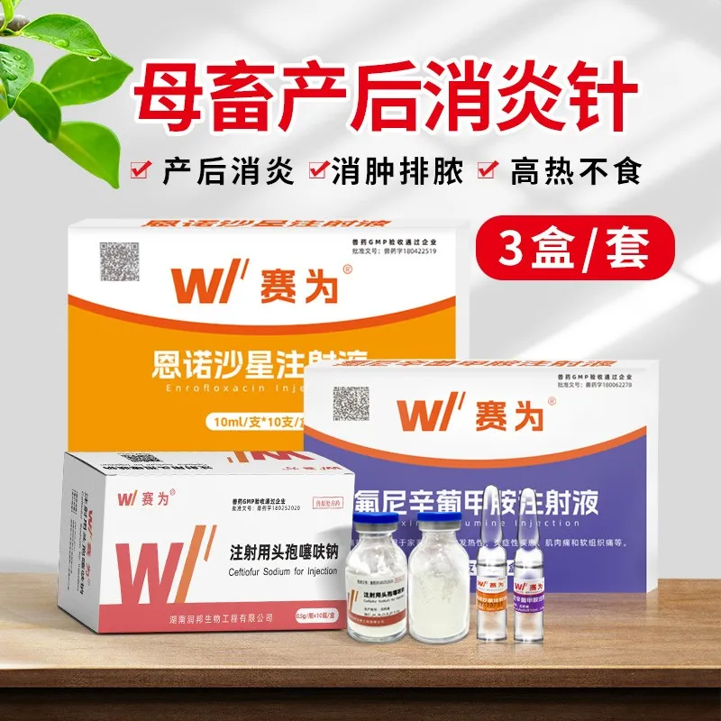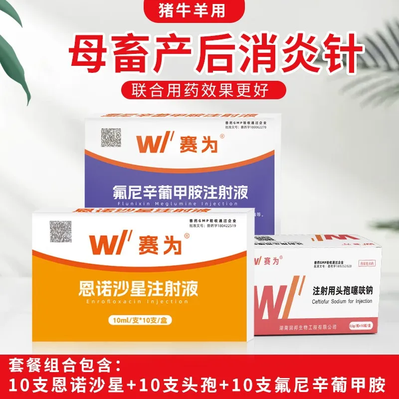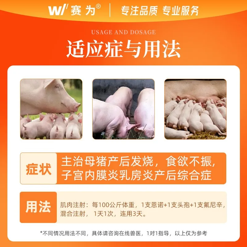 【產后消炎套餐】賽為母豬產后消炎恩諾沙星注射用頭孢噻呋鈉氟尼辛葡甲胺注射液高熱不食解熱鎮痛