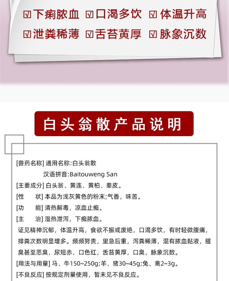 【百奧安圣】白頭翁散 清熱解毒 抗菌消炎 涼血止痢 澀腸止瀉
