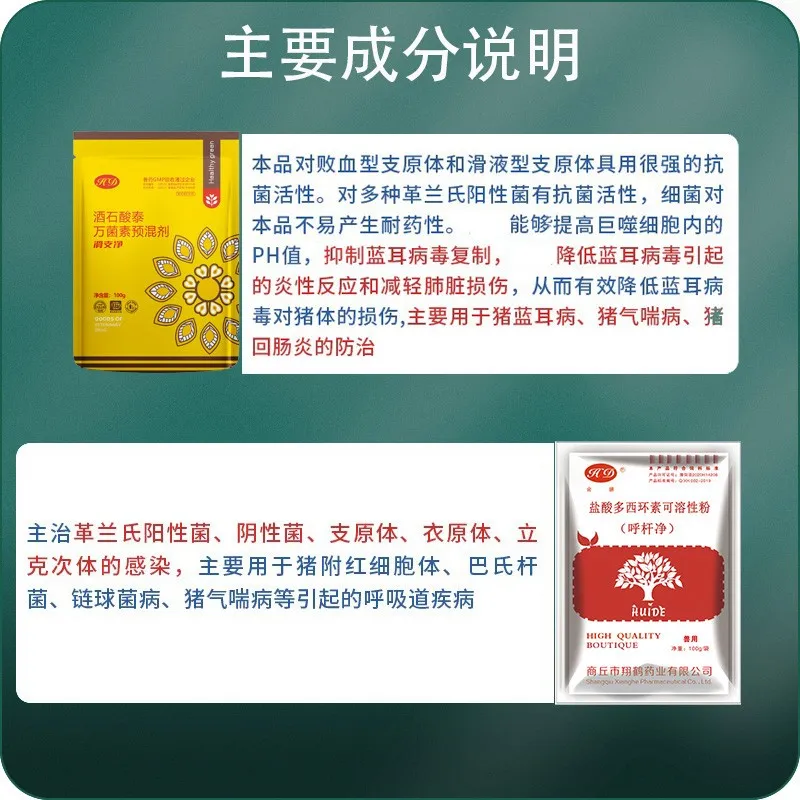 【會德】藍耳支原體凈化套餐 20%泰萬菌素+10%多西環素 支原體傳染性胸膜肺炎豬肺疫氣管炎回腸炎等