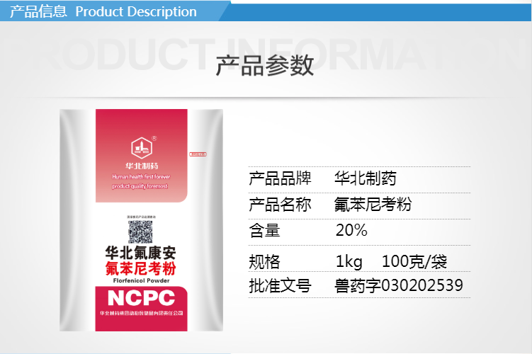 處方藥 【華北制藥】20%氟苯尼考粉 豬肺疫 副豬嗜血桿菌 傳染性胸膜肺炎 腸炎腹瀉 呼吸道 腸道