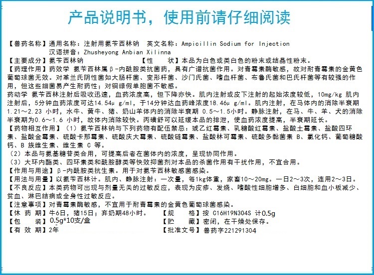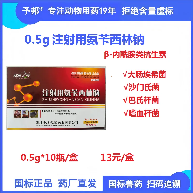 處方藥 【予邦】0.5g注射用氨芐西林鈉10支 獸用獸藥 國標可追溯 抗生素抗菌細菌感染 豬牛羊馬犬