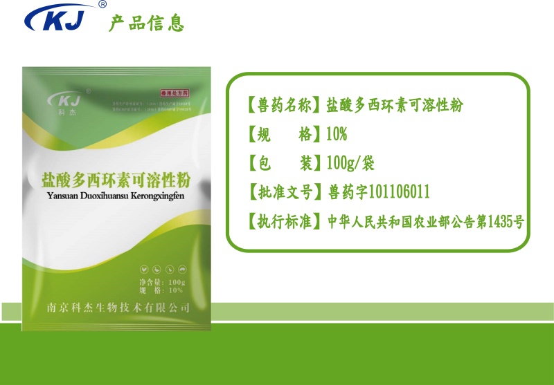 【南京科杰】10%鹽酸多西環素可溶性粉 用于治療畜、禽支原體呼吸道疾病、附紅體病,弓形體病。