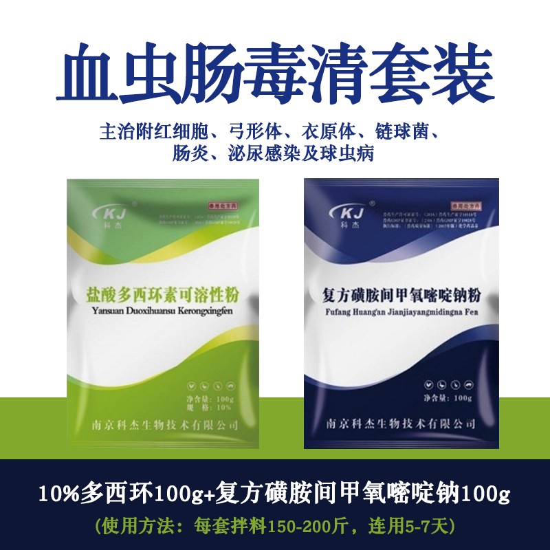 處方藥 【南京科杰】血蟲腸毒清套裝(鹽酸多西環(huán)素+間甲氧嘧啶鈉) 用于治療畜、禽附紅細胞、弓形體、小腸球蟲。