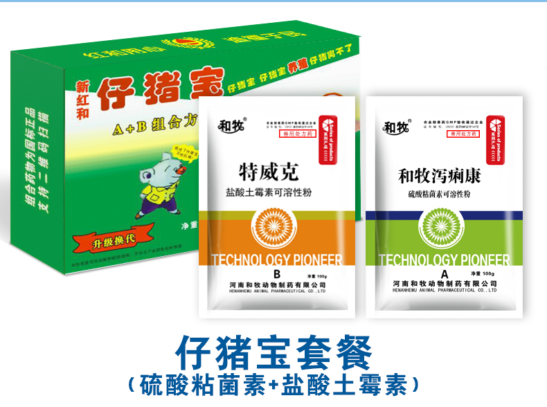 處方藥 【和牧制藥】 仔豬寶止痢促生長(zhǎng)套餐 鹽酸土霉素可溶性粉+硫酸粘菌素 腸炎細(xì)菌性腹瀉黃白痢拉稀附紅細(xì)胞