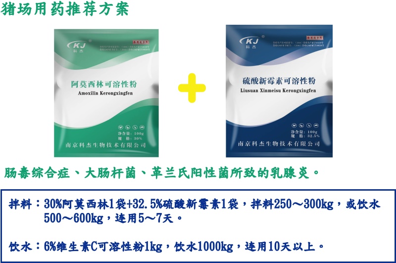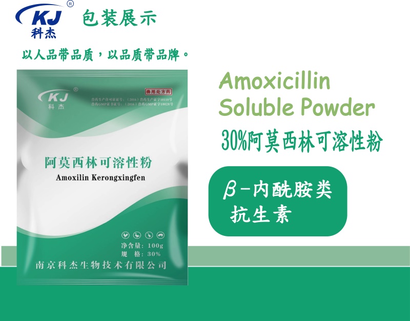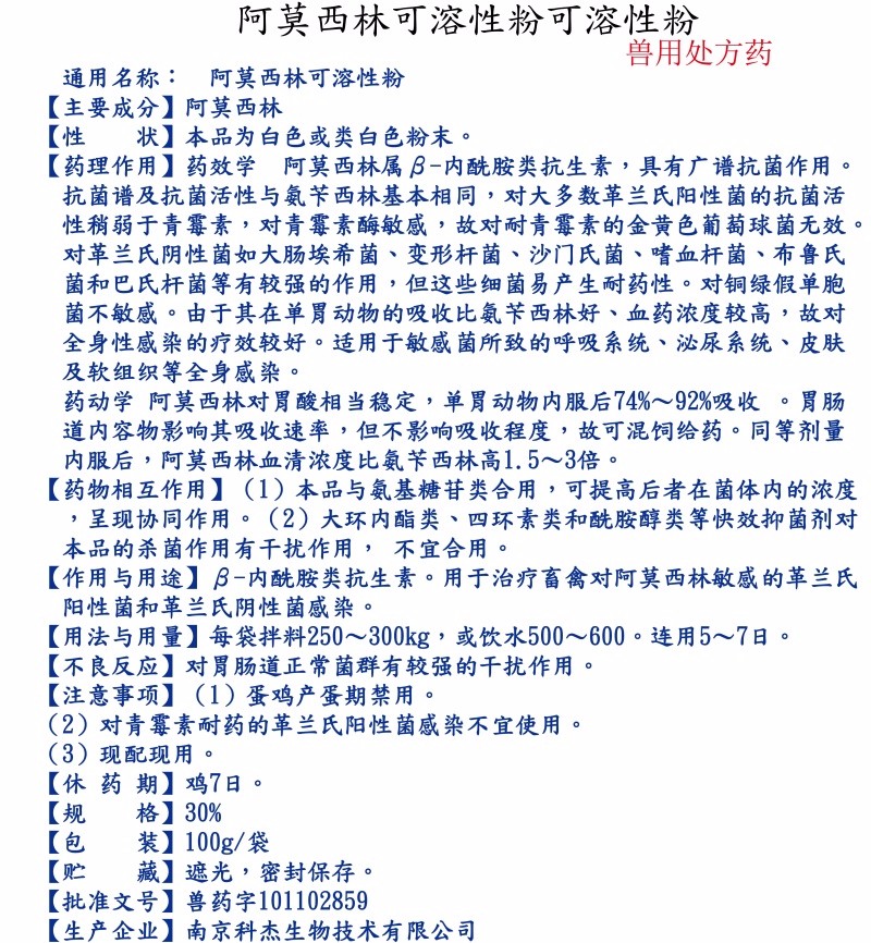 處方藥 【南京科杰】30%阿莫西林可溶性粉 用于治療畜、禽黃白痢、豬丹毒、母豬產科類疾病,抗感染,產后消炎。