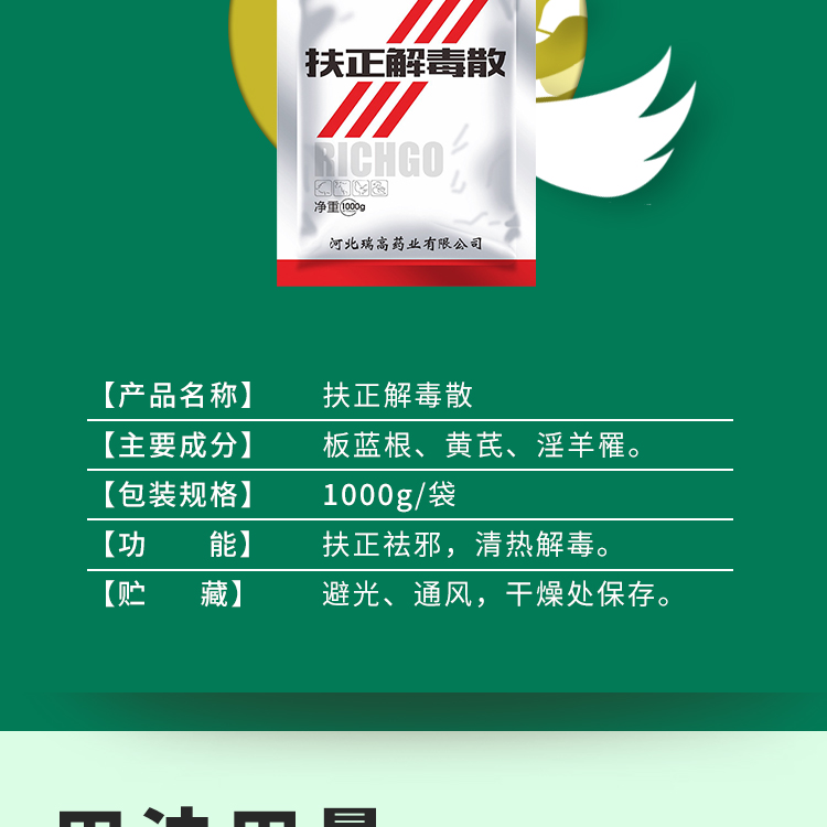 【綠健獸藥】扶正解毒散1000g*15袋/箱 整箱獸用扶正祛邪 排毒解毒