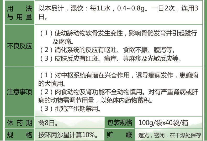 - 滿贈滿10件贈1件,【白云牧港】 10%乳酸環丙沙星可溶性粉獸用豬牛羊雞呼吸道藥禽藥獸藥貓腸炎拉稀止痢黃白痢腹瀉 規格:100g
