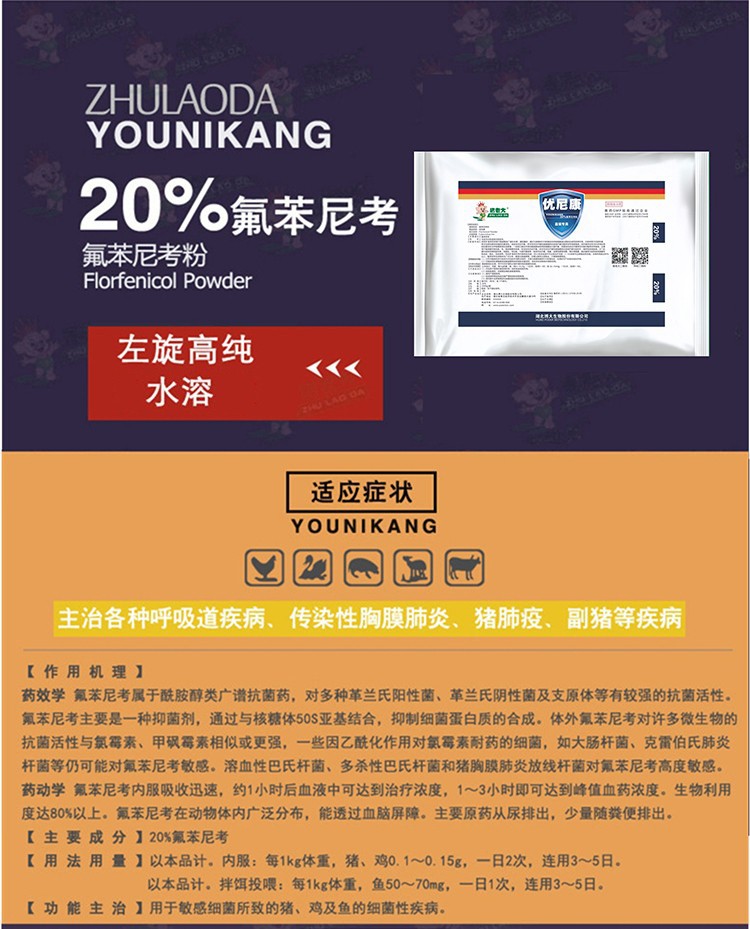 處方藥 【豬老大】優尼康 1kg/包 左旋20%氟苯尼考 可水溶 瑞士微晶化處理工藝